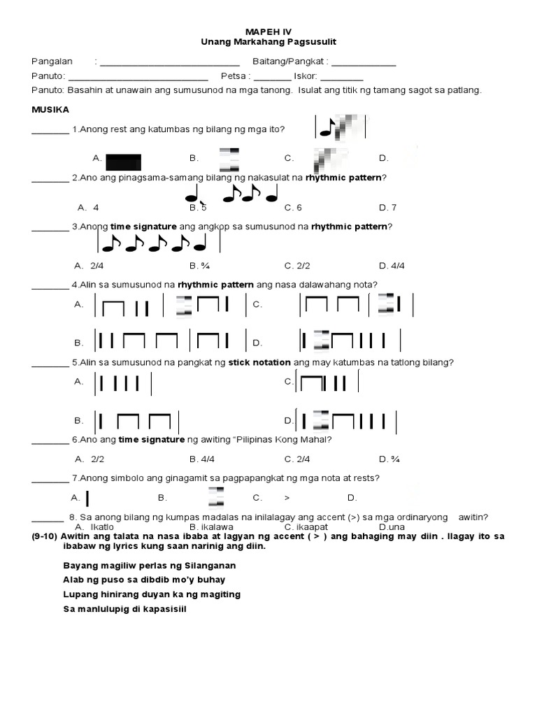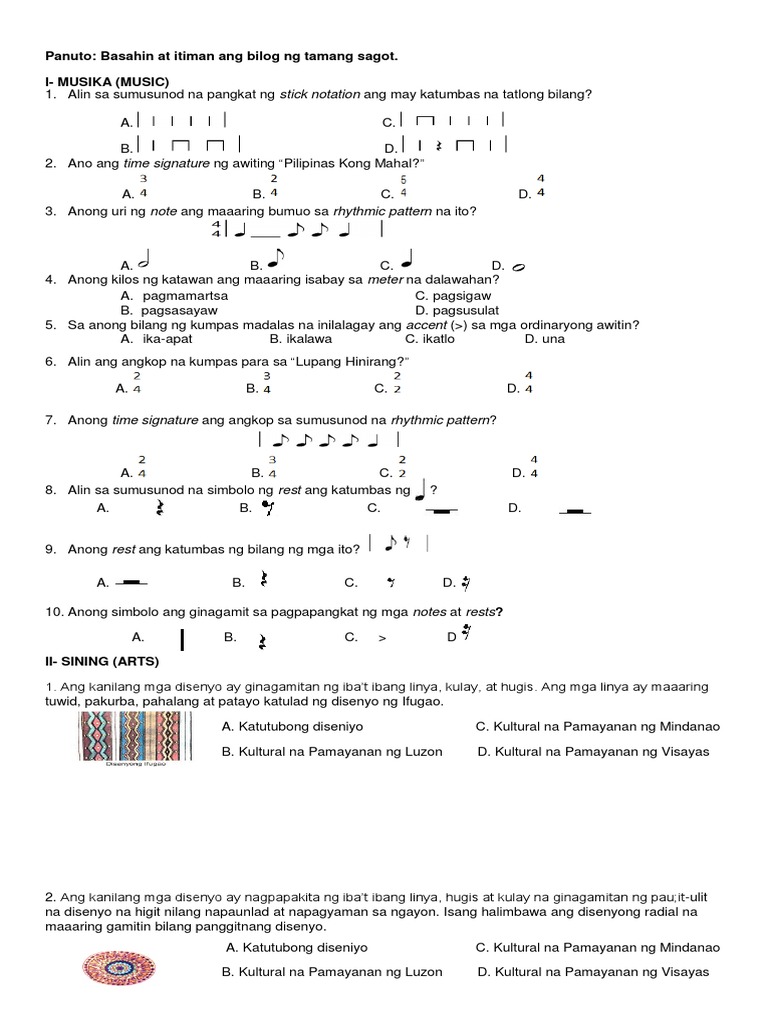 Preview 10 questions Show answers. Ito ay maaaring maging payak o di-payak batay sa bilang o kombinasyon ng mga nota sa isang hulwaran. Ang tumatanggap ng isang kumpas samantalang sa palakumpasang 22 ang tumatanggap.